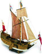 Charakteristika: Stavebnica neplávajúceho modelu MAMOLI HMS Victory v mierke 1:150 z roku 1765. Stala sa slávnou, keď sa 21. októbra 1805 zúčastnila ako vlajková loď admirála Nelsona v bitke pri Trafalgare, v ktorej Angličania porazili francúzsko-španielsku. Dĺžka 564mm, výška 475mm Dnes je pyšná loď plne obnovená, sedí na suchom doku a slúži ako pamätník na britskú námornú pýchu. V balení sú drevené diely, lišty a množstvo kovania, príslušenstvo, veľké stavebné plány v mierke 1: 1 a mnoho perspektívnych výkresov uľahčujú montáž. Určené pre skúsených modelárov. Obal s fotografiou hotového modelu Štýlová krabica s fotografiou hotového modelu je starostlivo, vkusne a kvalitne graficky vyvedená a obsahuje názov, technické údaje a merítko modelu. Čo nájdete v balení Po otvorení veka krabice nájdete drevené diely modelu z preglejky, sadu líšt, drobné súčasti uzavreté v plastovom priehľadnom blistri, sadu výkresov a manuál. Súprava výkresov Set obsahuje kompletnú sadu výkresovej dokumentácie modelu v mierke 1:1 s postupom stavby, na výkrese sú starostlivo označené diely a je tu aj zoznam jednotlivých súčastí modelu. Modely Mamoli Stavebnice neplávajúcich modelov lodí značky Mamoli sú veľmi populárne, vďaka veľkému výberu modelov s množstvom prvkov za atraktívnu cenu. Diely stavebnice sú vyrezané pomocou modernej laserovej technológie, ktorá zaisťuje, že jednotlivé diely dokonale sedia. Všetko príslušenstvo v sade je vyrobené z dreva a kovu a je z veľkej časti vopred opracované. Každý, kto zatúži po vlastnej vlastnoručne vyrobenej lodi, sa musí pripraviť na to, že bude mať po niekoľko týždňov či mesiacov po večeroch robiť. Znamená to mať určitú zručnosť a znalosť páce s rôznymi materiálmi, lepidlami, farbami a lakmi. V stavebnici je predovšetkým základný stavebný materiál, stavebné podklady a množstvo drobných či miniatúrnych súčastí a dekorácií. Avšak táto práca vám dá nahliadnuť do tajov konštrukcie lodí, do histórie skutočných lodí a častokrát aj môže priviesť ku komunite ľudí, posadnutými rovnakou vášňou k lodnému modelárstvu. Stavebná obtiažnosť 3 Modely makiet lodí pre pokročilých vyžadujú predchádzajúce skúsenosti so stavbou modelov a zvládnutej techniky jednotlivých technologických krokov, ako je lepenie, ohýbanie, farbenie, šitie plachiet, apod. Je nutné sa orientovať vo výkresovej dokumentácii, jednotlivé kroky a aj celý postup si rozvrhnúť. Prípadné detaily je nutné si naštudovať a treba počítať s tým, že stavba vyžaduje určitú mieru kreativity a samostatnosti, pretože návod sa nemusí zaoberať výrobou každého detailu. Modely sú obsiahle a detailné, ich dokončenie trvá dlho a vyžaduje veľa dokončovacích prác na dieloch. Obsah balenia: Balenie obsahuje sadu preglejkových dielov, drevených lišty, kovové odliatky, kovové doštičky, lanové, maketové doplnky, vlajky, sadu výkresov a manuál EN, DE, FR a IT. Odporúčame dokúpiť: Na stavbu odporúčame kúpiť náradie, lepidlo a farby. Modelárske náradie a podložka Na stavbu modelov lodí je nutné vhodné náradie. Odporúčame výbornú sadu Modelcraft náradia pre lodných modelárov (sada 12ks), alebo Modelcraft náradie pre modelárov (sada 18ks). Ďalej odporúčame kúpu nylonových svoriek a nenahraditeľné modelárske špendlíky. Na úpravu, presné rezanie, lepenie dielov a tiež ako ochranu stola odporúčame modelársku podložku. Lepidlo a farby Na lepenie odporúčame univerzálne disperzné lepidlo a Robitronic sekundové lepidlo stredné 20ml. Na farbenie odporúčame akrylové emailové farby. Farby nanášajte kvalitnými štetcami (ploché štetce na povrchy, okrúhle štetce pre detaily). Odporúčaná minimálna výbava lodného modelára: Modelársky nôž alebo skalpel Mini vŕtačka Vrtáky s priemermi 0,5 až 3mm Brúsne papiere s rôznou zrnitosťou Nožnice Pinzeta Kolíčky na bielizeň Ceruzka Pravítko Súprava ihlových pilníkov Šijací stroj na šitie plachty