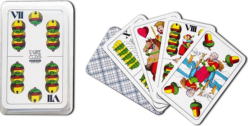 ...herná sada zobrazuje na jednotlivých figúrkach legendu o Viliamovi Tellovi, obraz kariet je s drobnými zmenami rovnaký už 150 rokov.