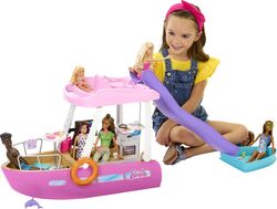Zažite dobrodružstvo na šírom mori s hrou Dreamboat od Barbie. Obsahuje viac ako 20 dielikov a šesť rôznych hracích plôch vrátane bazéna a šmykľavky. - Vytvorte vlny s Barbie® Dream Boat™! Táto hracia súprava je odetá do vysokokvalitných detailov vrátane bazéna, šmykľavky, dvoch rôznych transformácií a mnoho ďalšieho. - Bábika Barbie® môže vyliezť na hornú palubu, ovládať loď a relaxovať na slnku a potom sa zošmyknúť do bazéna! Deti môžu dokonca odstrániť hornú palubu pre ľahší prístup. Bábika nie je súčasťou balenia. - Šesť hracích plôch vrátane kúpeľne, slnečnej paluby, bazéna a šmykľavky, spálne, kuchyne a obývačky. Obývačku a kuchyňu v priebehu niekoľkých sekúnd prestavajte na spálňu a kúpeľňu! - Táto loďka Barbie® má viac ako 20 dielikov! K dispozícii sú doplnky s vodnou tematikou, ako sú plutvy a