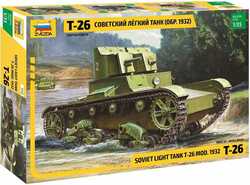 Model tanku ke slepení. Velikost: 1:35; 13,2 cm. Počet dílků: 226.Tank T-26 je prvním sovětským sériově vyráběným podpůrným tankem pěchoty. Byl vyzbrojen kulomety DT umístěnými ve dvou otočných věžích. Některé tanky měly v pravé věži 37mm kanón Hotchkiss. Celkem bylo vyrobeno 11 000 tanků T-26.