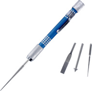 Štvordielna sada diamantových ihlových pilníkov Modelcraft a rukoväť sú výborným nástrojom na obrábanie veľmi tvrdých kovových súčastí. Do rukoväte je možné uložiť výmenné nástroje, majú dĺžku 45 až 65 mm a tvary kužeľové špicaté dlhý a krátky, plochý a kužeľovitý odihlovač. Dĺžka rukoväte je 117 mm.