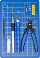 Modelcraft náradie pre plastikové modely (sada 10ks) je možné využiť nielen pri stavbe plastikových modelov. Obsahuje rezaciu podložku s rozmermi 230x160x3mm, modelársky nôž s hliníkovou rukoväťou a náhradnými čepeľami, plochý pilník, nástrojom na odihlenie hrán a štiepacie kliešte.