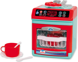 Umývačka riadu s reguláciou času umývania, 4 umývacími režimami a riadom. Po vložení riadu do umývačky a zatvorení dvierok ju spustíte stlačením tlačidla.Sledujte ukazovateľ času a keď sa resetuje, otvorte dvierka, prestane fungovať a pípne.