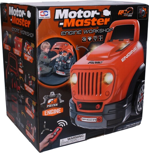 Hračka je určená všetkým zvedavým chalanom, ktorí si želajú stať sa automechanikom. Nauč sa opraviť motor terénneho auta a zisti, kde je závada. Motor má 61 súčiastok a rad funkcií.
