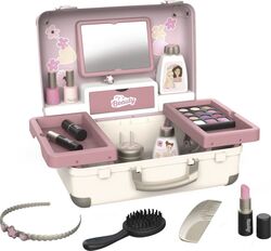 Všetkých 13 doplnkov (atrapy kozmetiky na hranie) nájdete vo vnútri kufríka s rukoväťou, ktorý je možné vziať kamkoľvek: