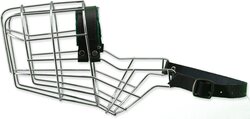 Kovový náhubok s koženými remienkami na zapínanie, vhodný napríklad pre plemeno debermana.