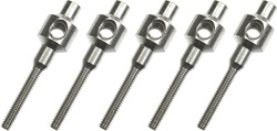 Nastaviteľná koncovka s vonkajším závitom M2 a otvorom pre drôt do priemeru 2.1mm. Drôt sa v koncovke poistí dvoma červíkmi M3 (nie sú v balení). 5 ks v balení, materiál niklovaná oceľ.