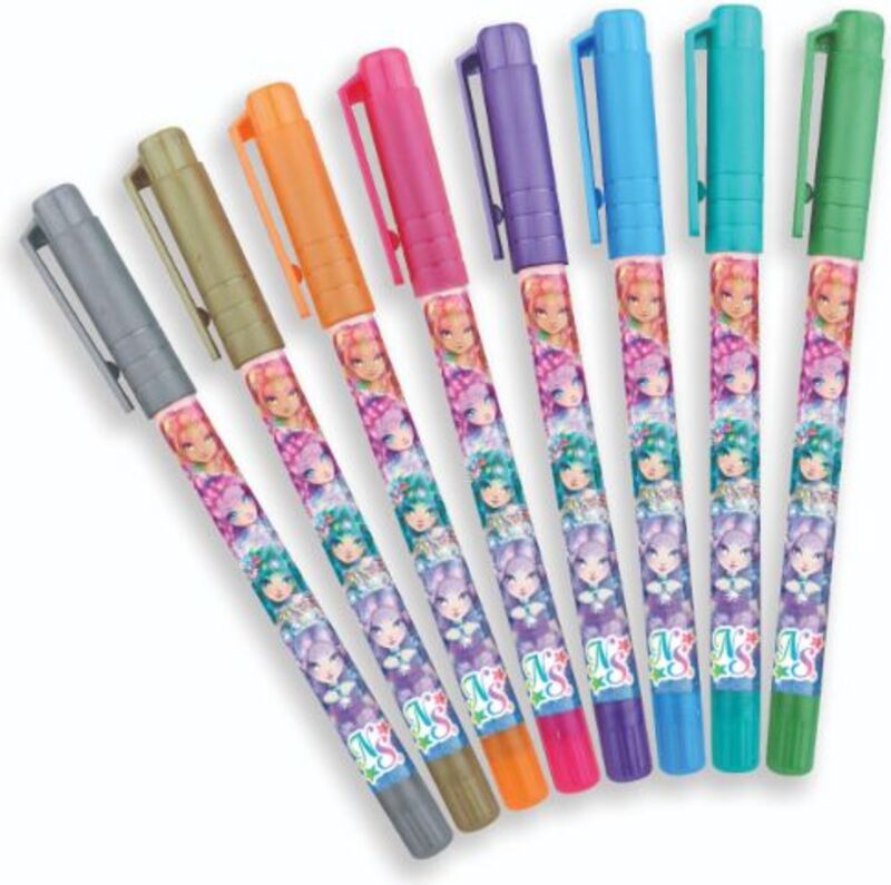- 9 pier s trblietavým gélom, 8 metalických pier, 8 neónových pier, 1 čierne gélové pero.
