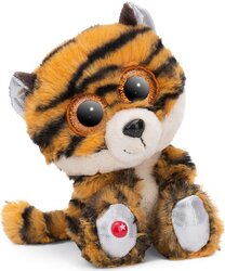 Glubschis Plyšový Tiger Stribby vás okúzli svojim hebkým kožúškom, veľkými zlatými trblietavými očami, lesklými prvkami na ušiach a nožičkách a očarujúcim výrazom tváre. V kolekcii GREEN od Nici sa takmer výhradne používajú plyšové a výplňové materiály vyrobené z recyklovaných materiálov.