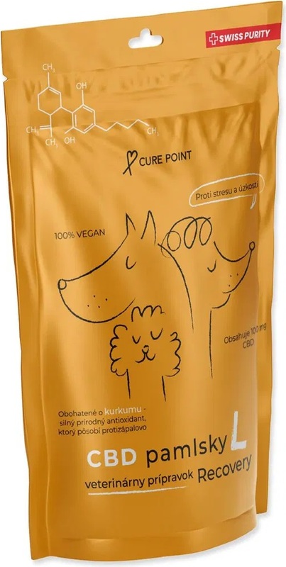 Veterinárny prípravok pre psy od 35 kg váhy s obsahom účinnej látky CBD (Canabidiol). Prípravok obsahuje kurkumu, ktorá má antioxidačné a protizápalové vlastnosti. Vďaka svojmu zloženiu môže byť ich užívanie nápomocné v boji proti artritíde a bolesti kĺbov.