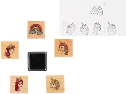 Pečiatky drevené 5+1 s poduškou jednorožcami