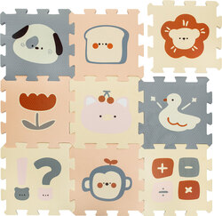 Jednotlivé dlaždice 30 × 30 cm (9 ks) do seba perfektne zapadajú. Podložka je vhodná pre deti od narodenia, vyrobená z nezávadného a príjemného materiálu.