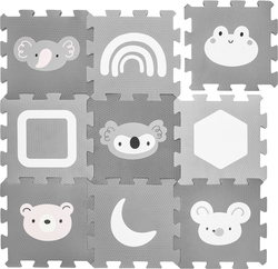 Jednotlivé dlaždice 30 × 30 cm (9 ks) do seba perfektne zapadajú. Podložka je vhodná pre deti od narodenia, vyrobená z nezávadného a príjemného materiálu.