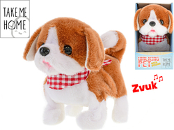 Pes plyšový 17cm bielo-hnědý chodiaci na batérie so zvukom