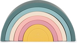 Silikónová skladacia hračka RAINBOW sa skladá zo šiestich farebných oblúkov, ktoré po umiestnení jeden na druhý vytvoria krásnu dúhu. Dúha je čarovnou bránou do sveta tvarov, farieb a poznávania. Skladanie oblúkov, ich otáčanie alebo ukladanie jedného oblúka na druhý je výborným cvičením pre malé rúčky. Dieťa si precvičuje presnosť pohybov a koordináciu. Skladačka vzbudzuje záujem dieťaťa, príjemným a pútavým spôsobom sústreďuje jeho pozornosť a učí ho tvorivému mysleniu. Usporiadanie neukladá konkrétne pravidlá, čím sa podporuje kreativita. Dieťa sa pritom skvele baví, môže vytvárať vlastné verzie skladačky, rozvíjať si konštrukčné zručnosti a precvičovať svoju priestorovú predstavivosť.