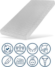 Najkvalitnejšia tvrdená polyuretánová pena zaisťuje dostatočnú tuhosť matraca a zároveň je pružná a odolná proti deformácii. Vyniká svojou výbornou elasticitou, tvarovou stálosťou a dlhou životnosťou. Kombinácia pevnej kokosovej vrstvy a PUR peny poskytujú bábätku optimálnu tvrdosť a oporu. Výška matraca 8 cm zabezpečí dobré fungovanie monitora dychu. Matrac je možné využiť obojstranne. Tvrdšia kokosová strana poskytne optimálnu podporu malému bábätku. Mäkšiu stranu môžete využiť pre batoľa a staršie dieťa.