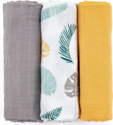 PETITE&MARS Sada plienok bambusová mušelínová 3ks Moussy Ochre Leaves, 68 x 68 cm