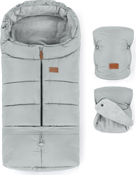 PETITE&MARS Set zimný fusak Jibot 3v1 + rukavice na kočík Jasie Quiet Grey