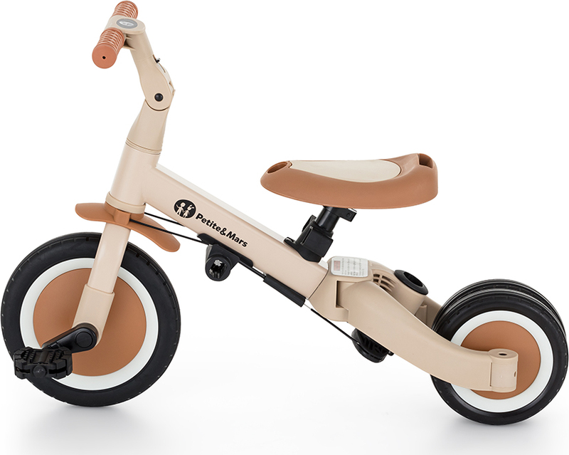 Spočiatku je to trojkolka s možnosťou asistencie rodiča, zatiaľ čo konečná verzia je štandardný bicykel s pedálmi, bez akýchkoľvek ďalších podporných prvkov.