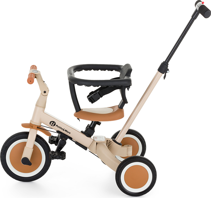 Riadidlá s protišmykovými gumovými rukoväťami sú nastaviteľné, pedále sú odnímateľné a sedlo sa prispôsobí výške, pričom vďaka nastaviteľným bezpečnostným pásom je zaistená maximálna bezpečnosť.