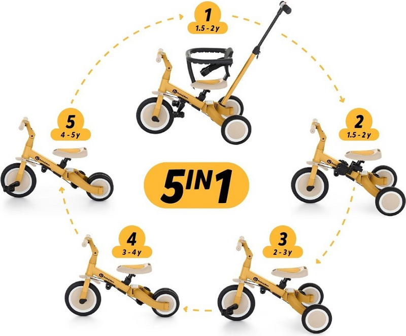 Jedinečnou vlastnosťou bicykla je jeho multifunkčnosť, vďaka ktorej ho môžete používať v piatich rôznych režimoch v závislosti od veku a zručností dieťatka: