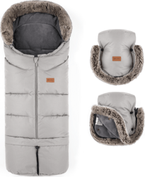 Komplet výbava na zimné kočíkovanie. Hrejivý fusak Artic 4v1 a rukavice Furry na kočík pre maminku alebo otecka. Fusak Arctic 4v1 má 4 rôzne spôsoby použitia: - do hlbokého kočíka - do športového kočíka - do autosedačky - kožušinková ochrana proti vetru (kožušinku možno ľahko a rýchlo odňať)  Vlastnosti: - Poskytuje pohodlie a teplo počas chladných dní. - Nepremokavý povrch chráni pred snehom a slabým dažďom.- Odolný voči vetru. - Vďaka technológii BIONIC-FINISH® ECO je povrchový materiál nepremokavý a zároveň neobsahuje žiadne nebezpečné látky. Funguje rovnakým spôsobom, ako príroda vytvára kryštalizované povrchové štruktúry na rastlinách a perí, ktoré umožňujú vode efektívne kĺzať po povrchu. - Desať otvorov na zadnej strane fusaku umožňuje pripevniť ho na kočík alebo autosedačku akejkoľvek značky. - Kožušinka sa zapína na gombíky a dá sa ľahko odopnúť a vyprať pri 30 °C. - Predný zips umožňuje rýchly a jednoduchý prístup k dieťaťu. - 4v1 - odopnutím spodnej časti zmeníte veľkosť fusaku na menší, ktorý sa hodí aj do vaničky alebo autosedačky, a pripevnením kožušinky - získate ochranu proti vetru.- Odnímateľná časť je vyrobená z ľahko udržiavateľného materiálu, praktického na špinavú obuv. - Šnúrky v hornej časti vytvárajú kapucňu, ktorá dokonale chráni dieťa pred vetrom a chladom. - Protišmykový povrch na zadnej strane (ABS) zabraňuje skĺznutiu dieťaťa v kočíku. - Teplá flísová podšívka udrží vaše dieťa v teple počas mrazivých zimných dní. - Reflexné prvky pre väčšiu bezpečnosť počas prechádzok.- Veľmi dlhý - až 110 cm. - K fusaku môžete doladiť rukavice s kožušinkou v rovnakej farbe. - Vhodné od 0 do 3 rokov (v závislosti od výšky dieťaťa).  Materiál a rozmery: - Dĺžka fusaku v krátkej verzii: 87 cm - Dĺžka fusaku v dlhej verzii: 110 cm - Šírka fusaku: 48 cm - Materiál: 100% polyester (STANDARD 100 podľa OEKO-TEX®) - Vodný stĺpec: 3000 mm - Ak má textilný výrobok označenie OEKO-TEX® STANDARD 100, môžete si byť istí, že každá zložka výrobku bola testovaná na prítomnosť škodlivých látok a je úplne bezpečná pre zdravie. Hrejivé rukavice na cestyKožušinové rukavice sú ideálnymi spoločníkmi na zimné prechádzky, ktoré spríjemnia aj tie najchladnejšie dni. Vďaka dvom samostatným častiam sa dajú ľahko pripevniť na akýkoľvek model kočíka, bez ohľadu na to, či ide o kočík s pevnou rukoväťou alebo golfový kočík so samostatnými rukoväťmi. Okrem toho vodoodolná úprava účinne chráni pred snehom a ľahkým dažďom, zatiaľ čo teplá kožušina poskytuje ochranu pred mrazivým vetrom. Vlastnosti:- 2 samostatné rukavice možno pripevniť na akýkoľvek kočík bez ohľadu na model.- Ozdobené kožušinou na ochranu pred vetrom.- 4 pevné cvoky.- Podšité teplým fleecom.- Nepremokavá úprava.- Univerzálna veľkosť, vhodná aj na ruky otca.- Možno prať v práčke pri 30 °C. Dlhé prechádzky počas zimných dní a studené ruky už nebudú problémom. Stačí rukavice pripevniť na rukoväť kočíka. - Materiál: 100% polyester.- Dĺžka rukávnika: 32 cm.- Šírka rukávnika: 30 cm.- 2 ks v balení. Čistenie: dodržiavajte pokyny na pranie uvedené na štítku.