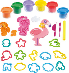 Plastelína plameniak 6x56g.Obsahuje 6 farebných plastelín, 13 vykrajovačov, 4 formičky.