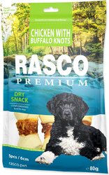 Pochúťka Rasco Premium byvolia koža obalená kuracím mäsom, uzly 6cm 80g