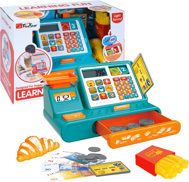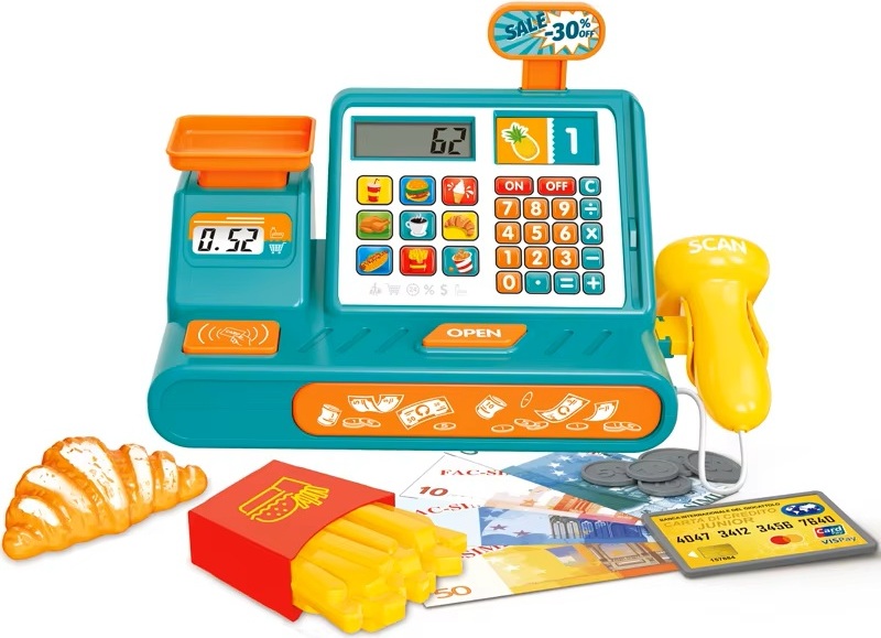 - pokladňu s výsuvným šuplíkom na mince, displejom a funkčnou kalkulačkou,