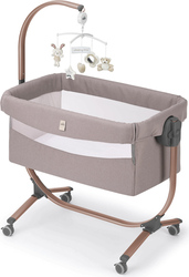 Vďaka odnímateľnej bočnici a možnosti posunúť celé lôžko na ráme do strany (až 16cm) ju možno ľahko umiestniť tesne vedľa vašej postele. Pre jednoduchú manipuláciu po byte je vybavená kolieskami. Cullami postieľku možno nastaviť do rôznych výšok i polohovať. Je ukotvená v kovovom ráme, postieľku lze zaistiť napevno alebo používať ako kolísku.