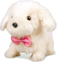 - Plyšový psík má sedem funkcií: kýva hlavou, šteká, kňučí, chodí vpred aj vzad, pije z fľaštičky, vrtí chvostíkom