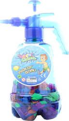 Praktická plastová fľaša s pumpou na plnenie vodných bômb, v troch farebných prevedeniach fľaše.