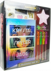 Rainbow High metalický denníček s gélovými perami, nálepkami a sponkami v krabičke