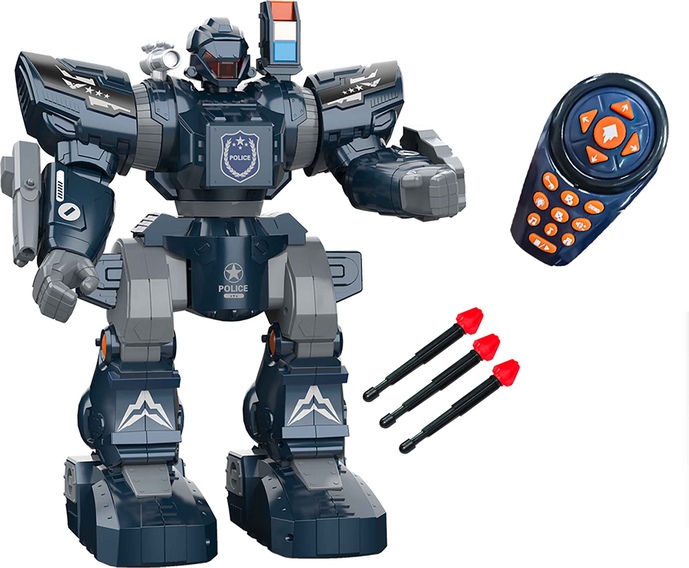 Robot Police strieľajúci s efektmi RC na diaľkové ovládanie prináša deťom zábavnú interaktívnu hru s realistickými svetelnými a zvukovými efektmi.