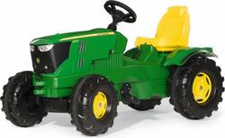 Šliapací traktor Farmtrac John Deere 6210R od značky Rolly Toys. Traktor má nastaviteľnú sedačku, úplne zakrytý pohon na reťaz s nastaviteľnou kľučkou šlapky a extra pevnou 12 mm oceľovou zadnú os. bezhlučné kolesá.