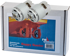 Súprava pohonu pre model lode ROMARIN Happy Hunter, obsahuje 2 motory MAX POWER 700 12V vrátane odrušovacích kondenzátorov, prepojovacích káblov a montážnych skrutiek. Motory s vysokým krútiacim momentom sú pripojené priamo k hriadeľu lode.