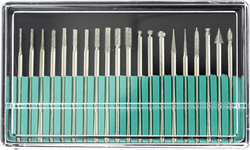 Rotacraft stopkový unášač s gumovým unášačom a 5 hrubými a 5 jemnými brúsnymi diskami priem. 23mm, na dokončovacie práce na kovových, plastových, drevených a kamenných obrobkoch. Gumová podložka je na drieku 2,35 mm. maximálna rýchlosť 20 000 ot/min.