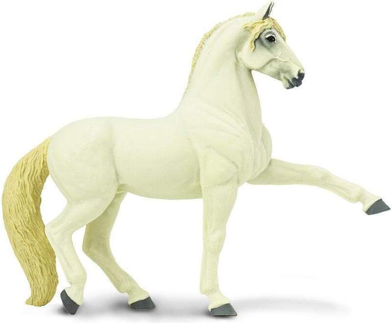 Veľkosť a farba: S dĺžkou 4 1 palca (cca 11,4 cm) je tento andalúzsky žrebec približne veľký ako puzdro na CD. S krémovo bielou srsťou a žltobielou hrivou a chvostom je ideálnou reprezentáciou tohto plemena.