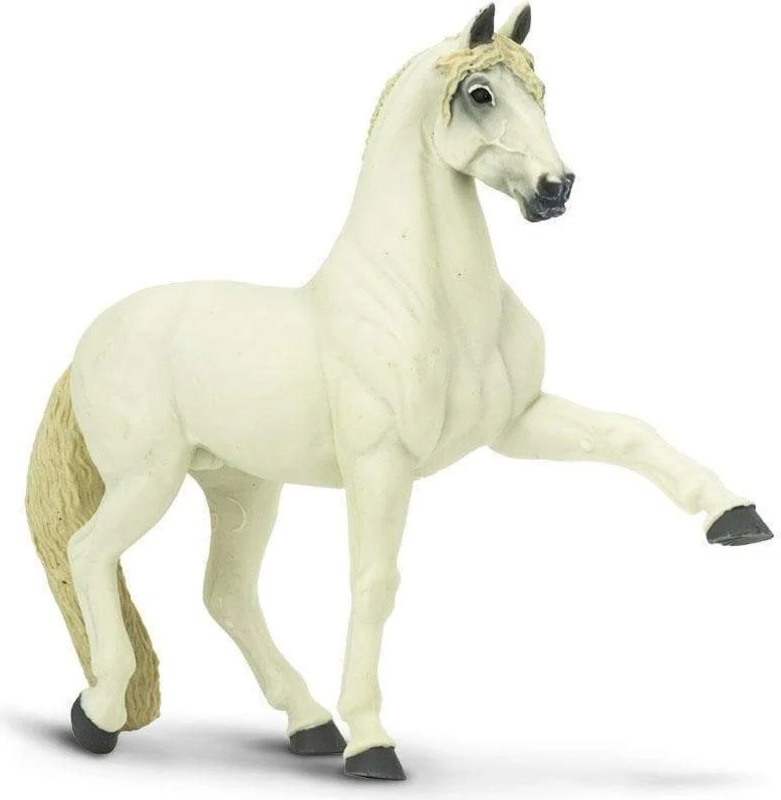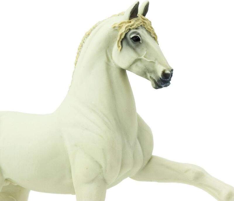 Charakteristika: Táto figúrka koňa zachytáva všetky najznámejšie znaky slávneho andalúzskeho žrebca, vrátane vlnitej hrivy a chvosta, čisto bieleho sfarbenia a okázalej akcie (pohybu).