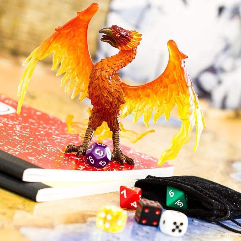 Vedecký názov je Phoenix. Táto figúrka Fénixa, vždy zobrazovaná ako veľká a farebná, zachytáva najpopulárnejšie pohľady na toto mýtické stvorenie. S krídlami ako plamene vyzerá, že je pripravený vzlietnuť do neba.