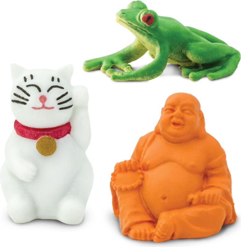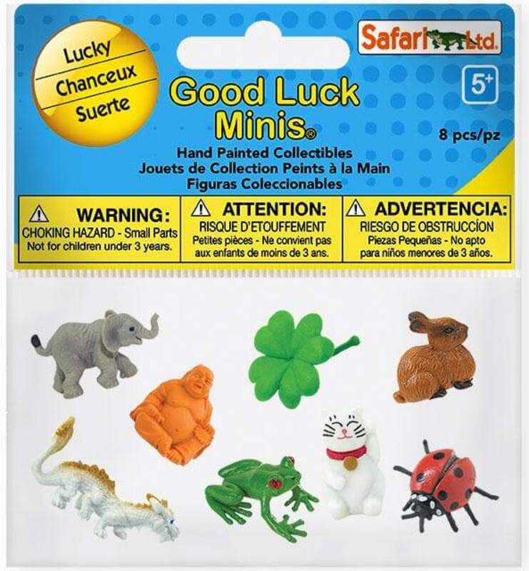 Čo je šťastnejšie ako balíček Lucky Fun Pack figúrok Good Luck Minis®? Tento balíček obsahuje symboly šťastia z kultúr z celého sveta, vrátane: Žaby, Lienky, „Mávajúcej mačky“, Draka pre šťastie, Buddhu, Slona, Králika a Štvorlístka.