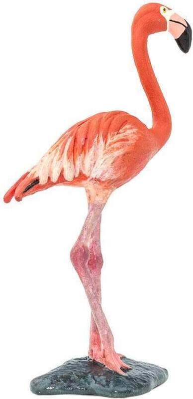 Vedecký názov a charakteristika: Vedecký názov je Family Phoenicopteridae. Táto hračka plameniaka má vysoko detailný výlisok a maľbu, ktorá zvýrazňuje najznámejšie znaky vtáka, od jeho jedinečne zakriveného zobáka až po dlhý krk a nohy. Je umiestnený na podstavci pokrytom riasami pre stabilitu.