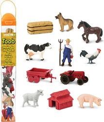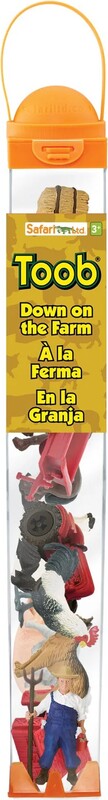 S rozmermi 1,5 palca (cca 3,8 cm) na dĺžku, 1,5 palca (cca 3,8 cm) na šírku a 12,8 palca (cca 32,5 cm) na výšku je tento TOOB o niečo väčší ako štandardné americké pravítko a obsahuje 11 figúrok najdôležitejších farmárskych potrieb, ktorých výška sa pohybuje od 1,25 do 3,75 palca (cca 3,2 – 9,5 cm).