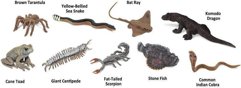 Vedeli ste, že rozdiel medzi jedovatými (venomous) a otrávnymi (poisonous) druhmi je v tom, že jedovaté tvory prenášajú toxín a majú spôsob, ako ho vstreknúť, zatiaľ čo otrávne tvory nesú toxín, ale nemajú spôsob, ako ho preniesť? Naučte sa ďalšie zaujímavé fakty, ako je tento, s našimi úžasne presnými figúrkami.