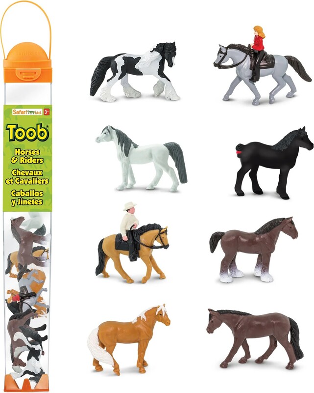 S rozmermi 1,5 palca (cca 3,8 cm) na dĺžku, 1,5 palca (cca 3,8 cm) na šírku a 12,8 palca (cca 32,5 cm) na výšku je tento TOOB o niečo väčší ako štandardné americké pravítko a obsahuje 8 farebných figúrok, ktorých výška sa pohybuje od 1,25 do 3,75 palca (cca 3,2 – 9,5 cm), vrátane 6 samostatných koní a 2 jazdcov s koňmi.