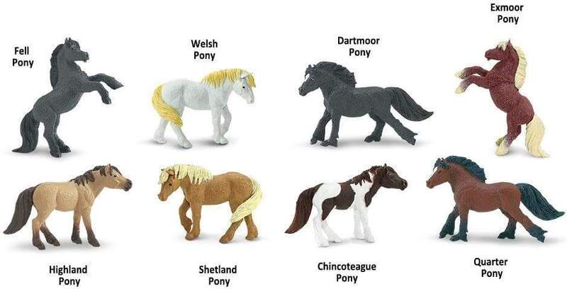 Dartmoor, Highland, Fell, Welsh, Quarter, Shetland, Chinoteague a Exmoor poníka.