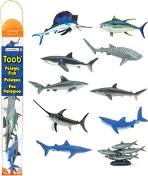 Obsahuje 10 figúrok rýb z pelagiálnej oblasti, ktorých dĺžka sa pohybuje od 2,5 do 3,5 palca (cca 6,4 – 8,9 cm). 10 kusov v balení TOOB®. Obsah nie je možné zakúpiť jednotlivo. Všetky naše produkty sú netoxické a bez obsahu BPA.