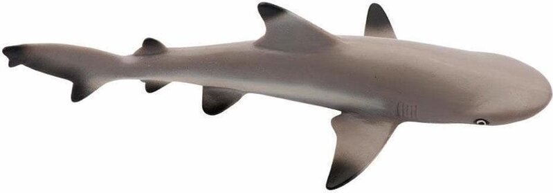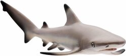 Veľkosť a farba: Ako naznačuje ich názov, žraloky čiernoplutvé majú výrazné čierne špičky na všetkých svojich plutvách, ako aj bridlicovo sivú kožu s bielou spodnou stranou. Táto figúrka, dlhá 5,75 palca (cca 14,6 cm) a široká 1,5 palca (cca 3,8 cm), má zhruba veľkosť plechovky od sódy položenej na bok.