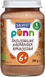 Marhuľové pyré (33%), jablkové pyré, voda, hruškové pyré, OVSENÉ vločky (8%), repkový olej. V BIO kvalite. Obsahuje GLUTÉN.