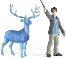 Čarodejnícky svet figúrka Harry s Patronusom od Schleicha je magické modelové duo Chlapca, ktorý prežil a jeho ochranného jeleňa. Harry stojí so zdvihnutou pravou rukou, pripravený prútik a má na sebe ležérne oblečenie. Jeho modrý priesvitný jeleň Patronus pomáha zaistiť, aby ste mohli hrať v imaginárnom Rokforte a zostať v bezpečí pred dementormi.